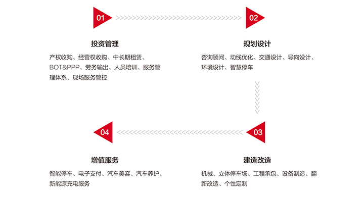 赛迪停车管理是一体化全方位停车场方案提供者,具有从投资收购、设计建造到管理运营各种类型和规模的停车 场的一站式服务能力。覆盖停车场生态前端至后端,形成闭环业务体系。
